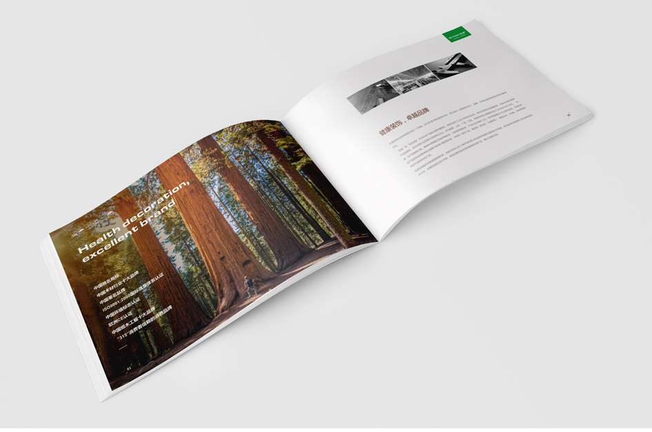 百品同源,生態(tài)自然 千里生態(tài)自然,于此綿廷不絕;百品同出一源,融匯時尚經(jīng)典 道法自然,以不拘于形的超然之態(tài),詮釋健康環(huán)保的現(xiàn)代家裝理念 畫冊設(shè)計清新自然,完美呈現(xiàn)