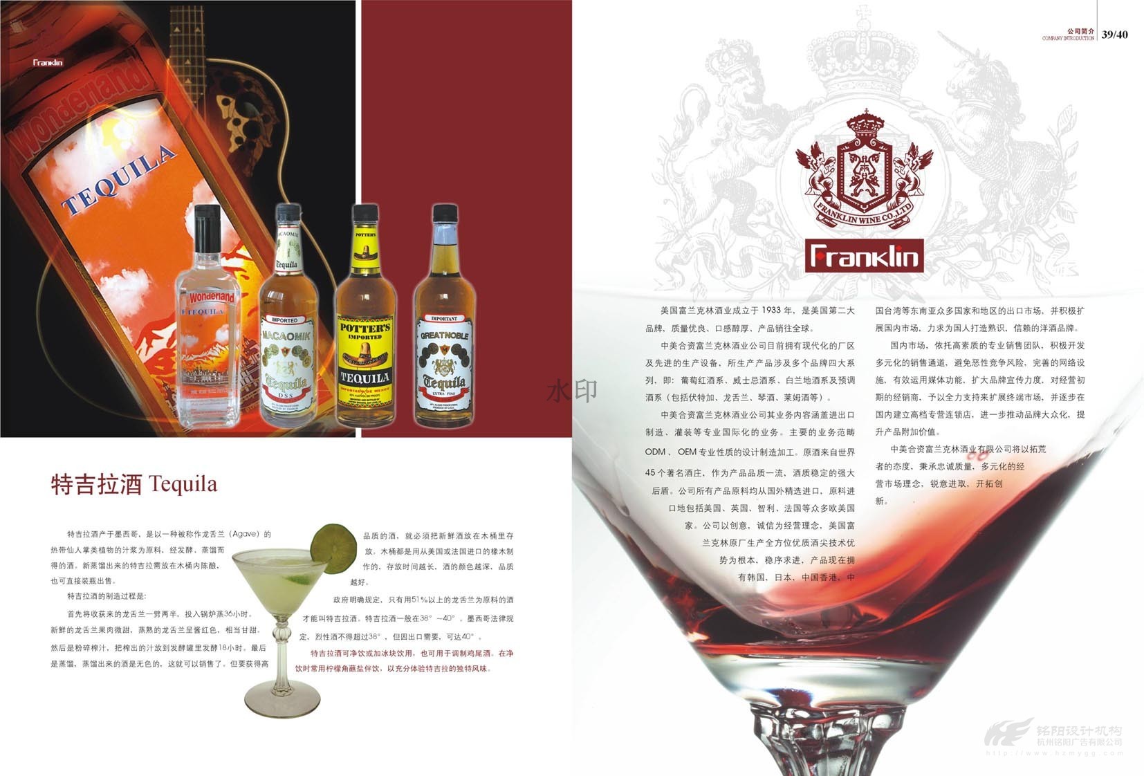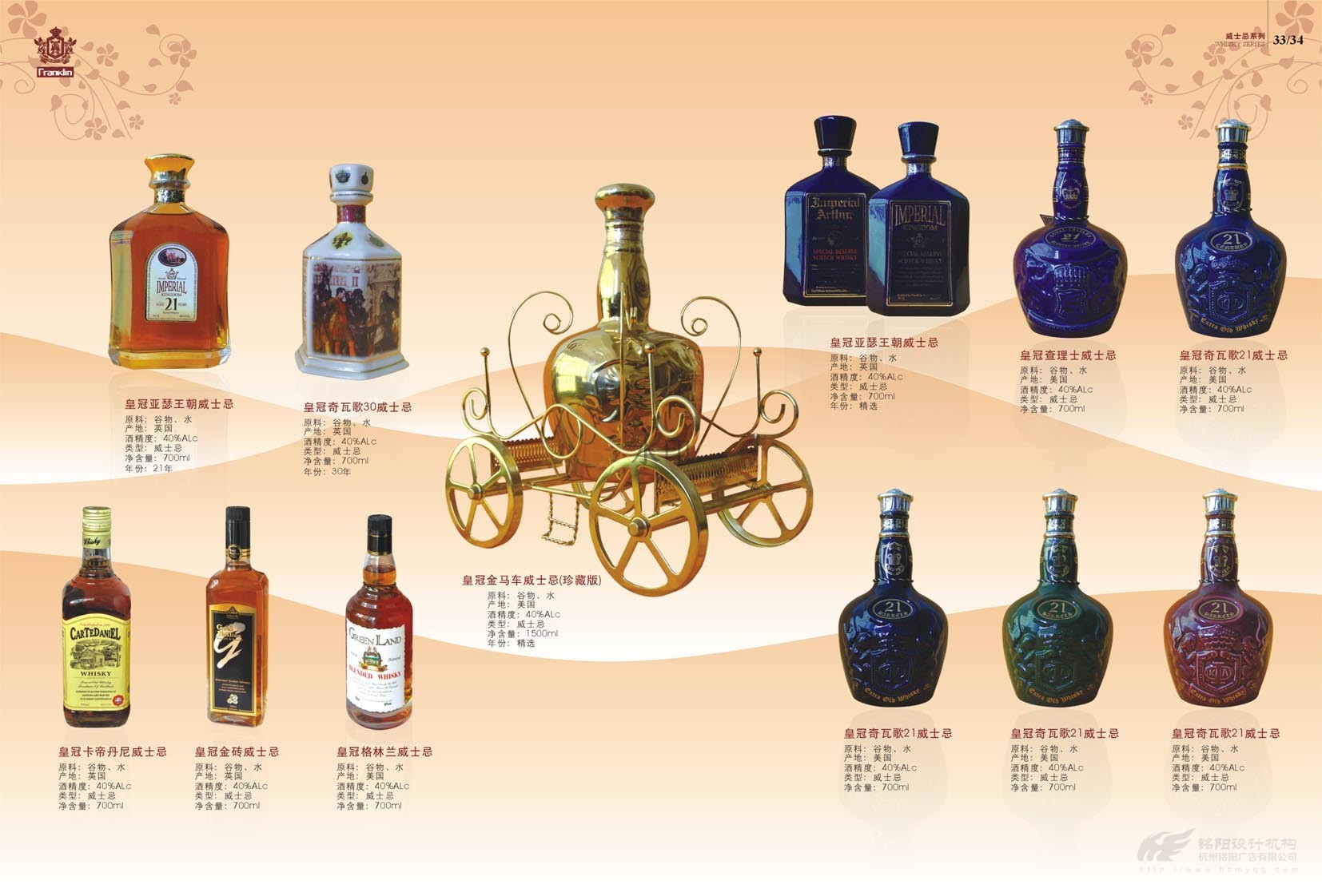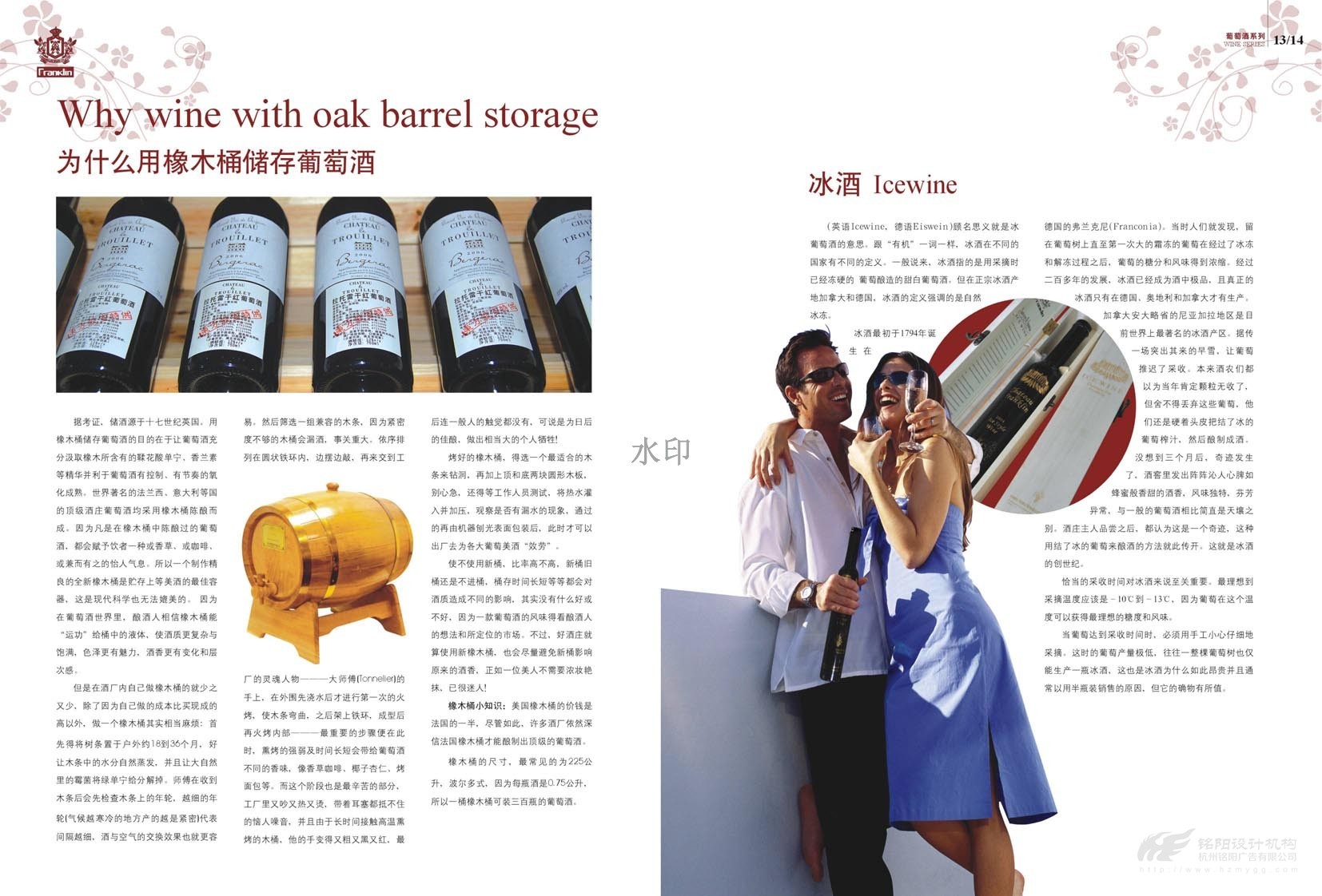 “只為懂生活的您......”,“一次邂逅·此生心傾”。美國富蘭克林酒業成立于1933年,是美國第二大品牌,宣傳冊設計概述了葡萄酒歷史,法國五大頂級酒莊,如何鑒別、鑒賞紅酒,葡萄酒的分級及餐桌禮儀等。圖文并茂,精美絕倫,是一本值得收藏的畫冊。
